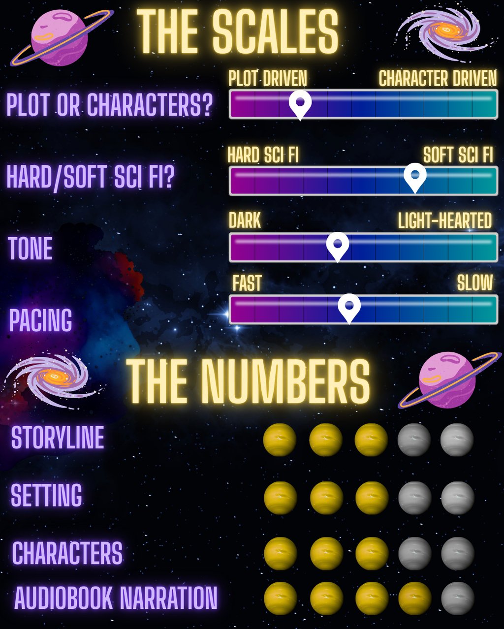 Also regarding the narration, at times the narrator’s voice sounded… off? I’m not sure how to describe it honestly. It’s not terrible, but two or three times it got me out of the story where I was like “why was it delivered like that?”